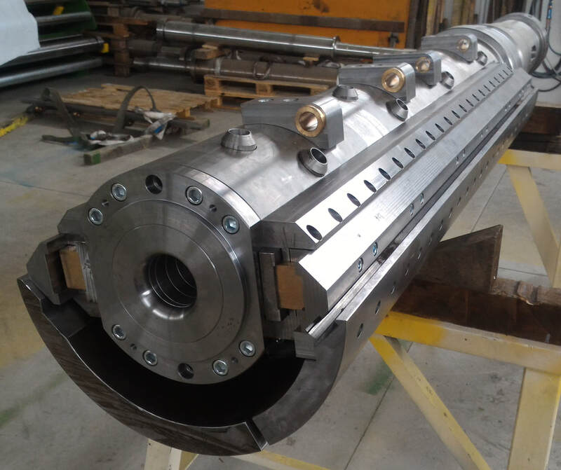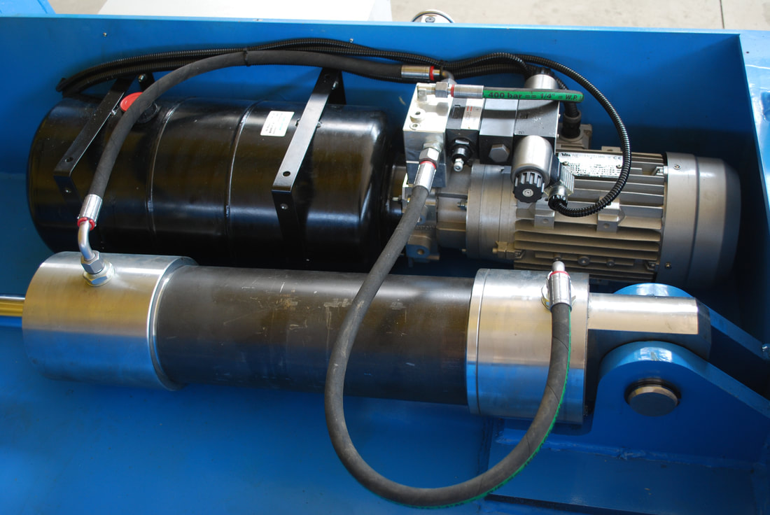 Cesoia intestatrice idraulica con pistoncini premilamiera su linea 1600x6 per acciaio INOX.